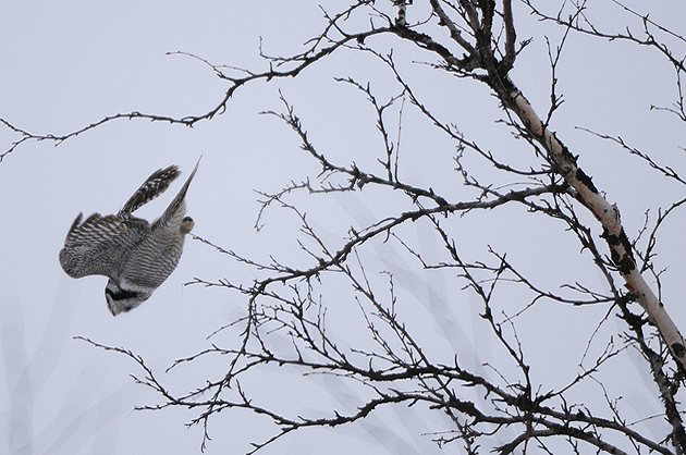Dulcis in fundo, una specie ormai insperata (l'avevamo cercata assiduamente a Kaamanen): l'Ulula. La prima che abbiamo visto ha sollevato ululati (ah! ah!) di approvazione; poi ne abbiamo vista un'altra e poi un'altra ancora. Alla nona Ulula pensavamo con rammarico al fatto che erano tutte posate su artefatti umani (piloni elettrici): non si accontentano mai i birdwatcher! Ma il dio dei suddetti, evidentemente non offeso dai nostri pensieri sull'Orca (© Massimo Castrini)... | |