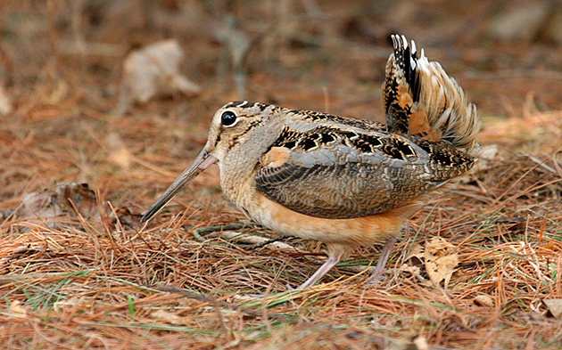![]() La Beccaccia americana è un elusivo abitante delle foreste boreali. Ci vorrebbe molta fortuna a vedere da vicino questo splendido Scolopacide, che rimane invisibile e immobile nella foresta fino a quando non ci si avvicini a pochi centimetri! Non dovrebbe essere invece difficile vedere la sagoma, la sera tardi, degli individui che volano alti sulla foresta eseguendo il volo nuziale, caratterizzato dal drumming, un rumore come di tamburello ad alta frequenza, causato dalle vibrazioni che le penne della coda mantenute allargate rispetto al corpo producono durante i tuffi aerei eseguiti dall'animale (© Steve Byland, Fotolia)