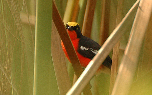 ![]() I bellissimo Gonolek dei papiri non è una preda facile dei binocoli dei birdwatcher, nonostante il coloratissimo piumaggio. Facile da localizzare in mezzo ai papiri in virtù del suo melodioso canto, ma assolutamente arduo da inquadrare nel binocolo, a causa delle sue abitudini furtive (© Tom Tarrant, Creative Commons 3.0 Unported) ![]() Il barbetto facciarossa, una specie estremamente localizzata in Africa, è uno dei tre top-bird di Lake Mburo (gli altri due sono Svassorallo africano e Pavoncella pettobruno) (© Andrea Schieber Creative Commons 2.0 Generic) ![]() La riserva di Mabira protegge la più vasta foresta umida semi-decidua in Uganda. La sua avifauna è ben diversa da quella delle foreste afromontane. Il Pigliamosche azzurro codabianca è uno dei suoi più graziosi abitanti (© Dick Forsman) |